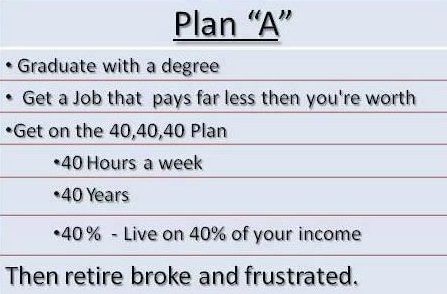 a degree and find a job with 40 hours a week for 40 years - no investment.